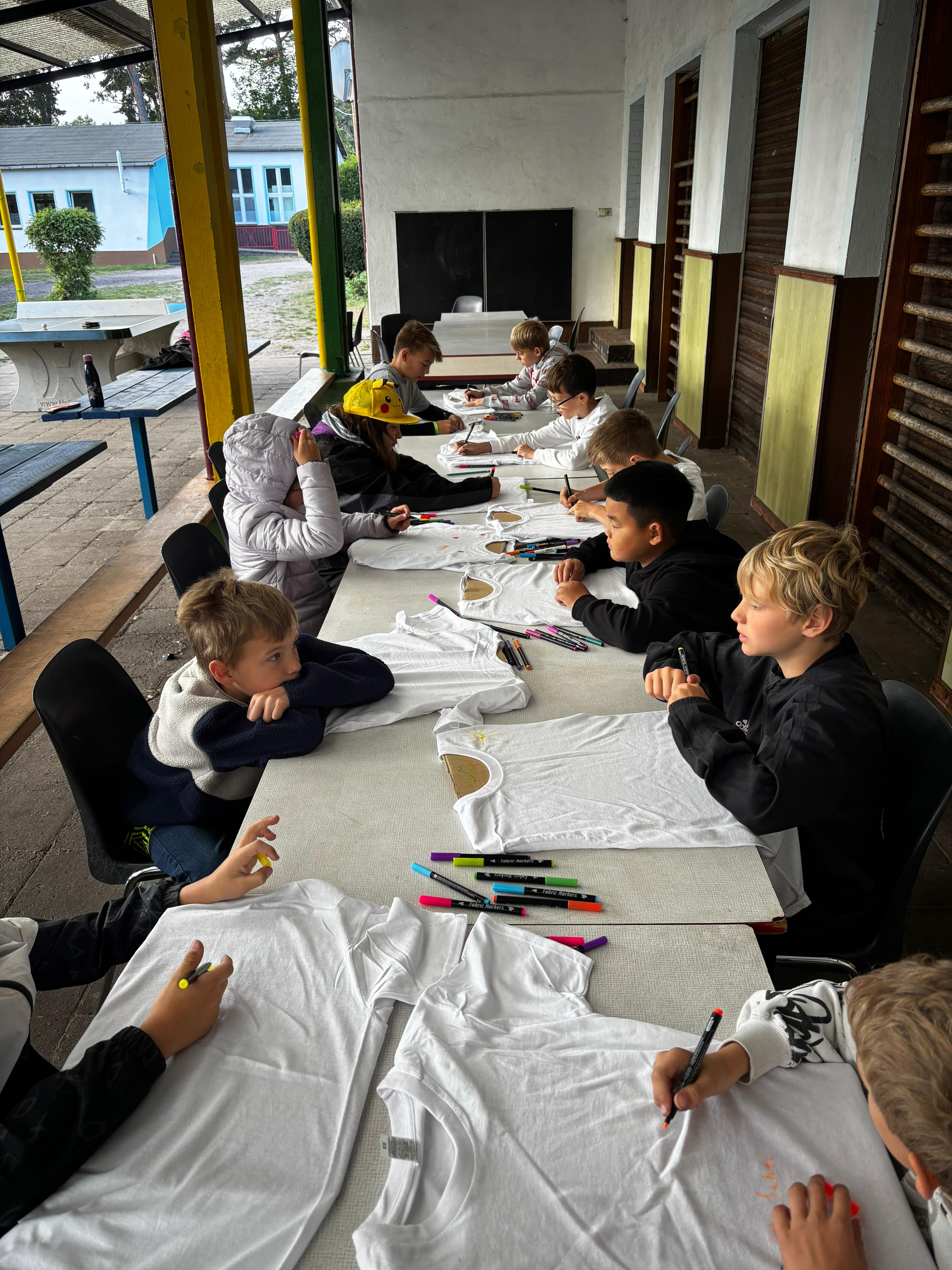 Heute wurde das Programm mal wieder aufgeteilt. Die eine Hälfte der Kinder war am Vormittag im Haus des Waldes während die anderen Kinder Shirts gestaltet haben. Am Nachmittag wurde das ganze umgedreht. Außerdem konnten die Kinder, die am Nachmittag da geblieben sind noch ins Wasser gehen. Am Abend wurde dann mit fast allen Kindern „Räuber und Polizei“ gespielt.