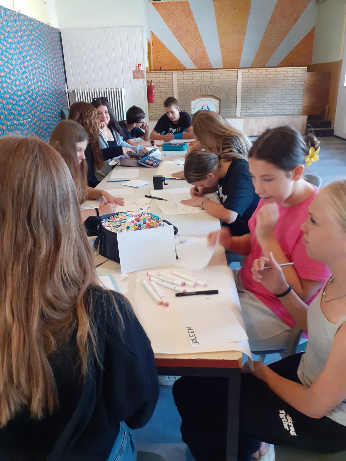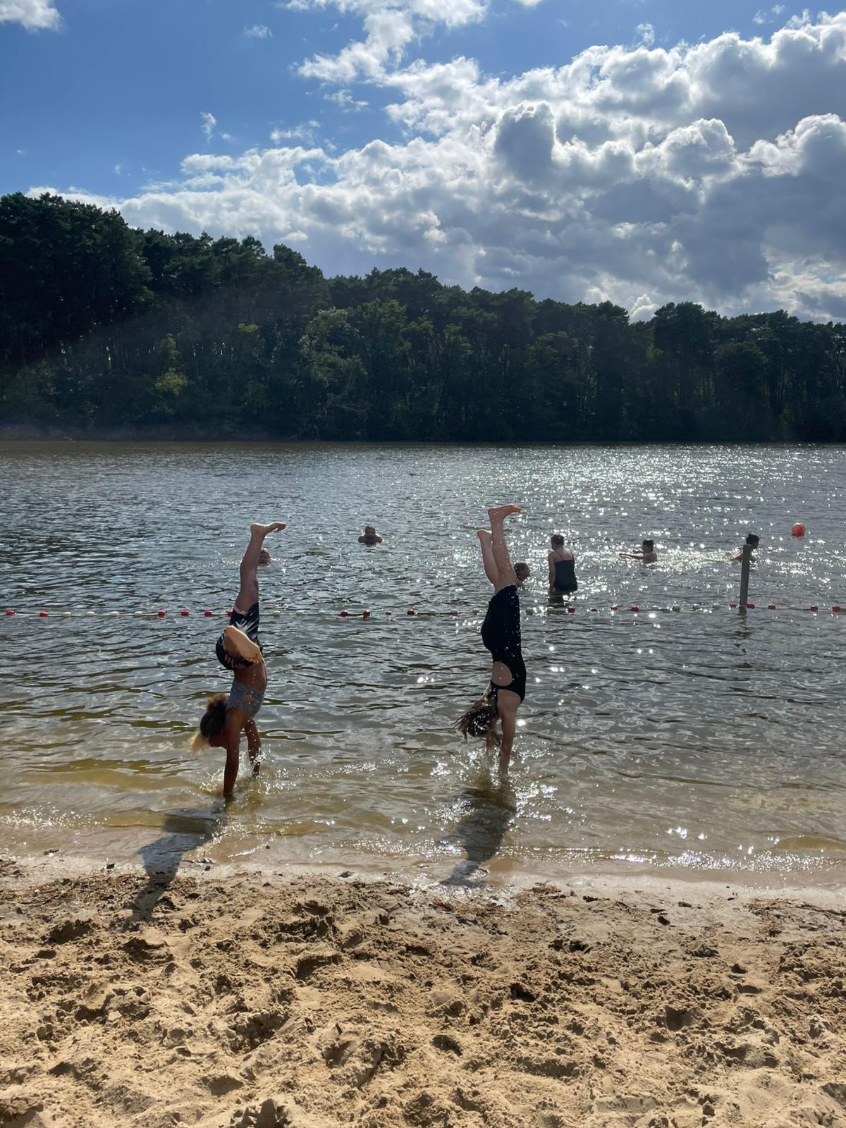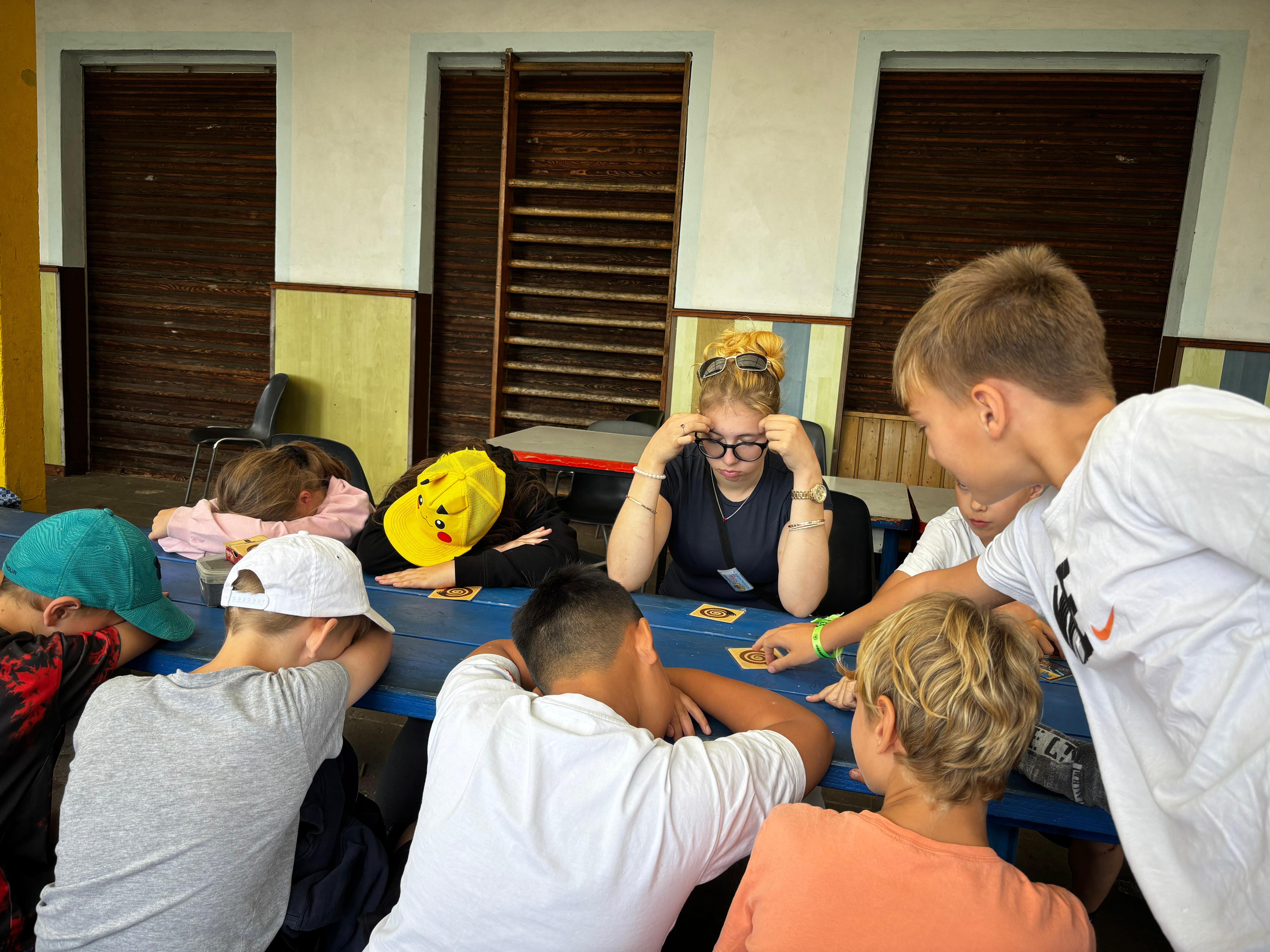 Am heutigen, ersten vollständigen, Tag im Ferienlager, haben sich alle Gruppen vor allem mit den Angeboten beschäftigt, die die Betreuerinnen und Betreuer für die Kinder überlegt haben. So wurde Gelände-Scrabble und Werwolf gespielt. Außerdem gab es dann noch die ein oder Runde Zombie-Ball. Dann wurden noch Türschilder gebastelt und auch der Wochenplan für den nächsten Tag gestaltet. Auf Wunsch der Kinder hatten dann alle die Möglichkeit, baden zu gehen. Auch wurden schon erste Ideen für den Showabend gesammelt.